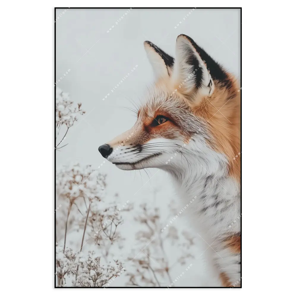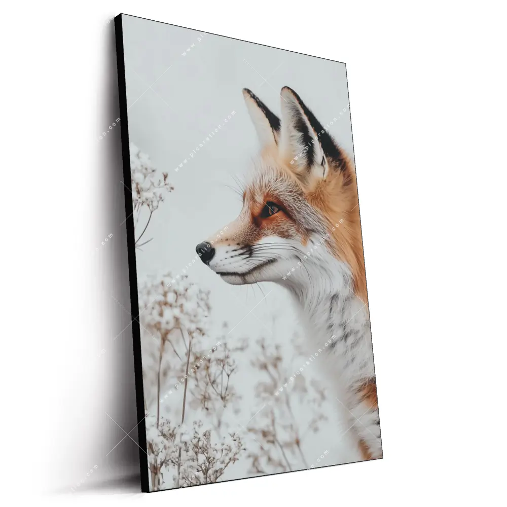 Fuchsporträt in frostiger Stille als LED-Wandbild verleiht dem Raumen einen faszinierenden Zauber
