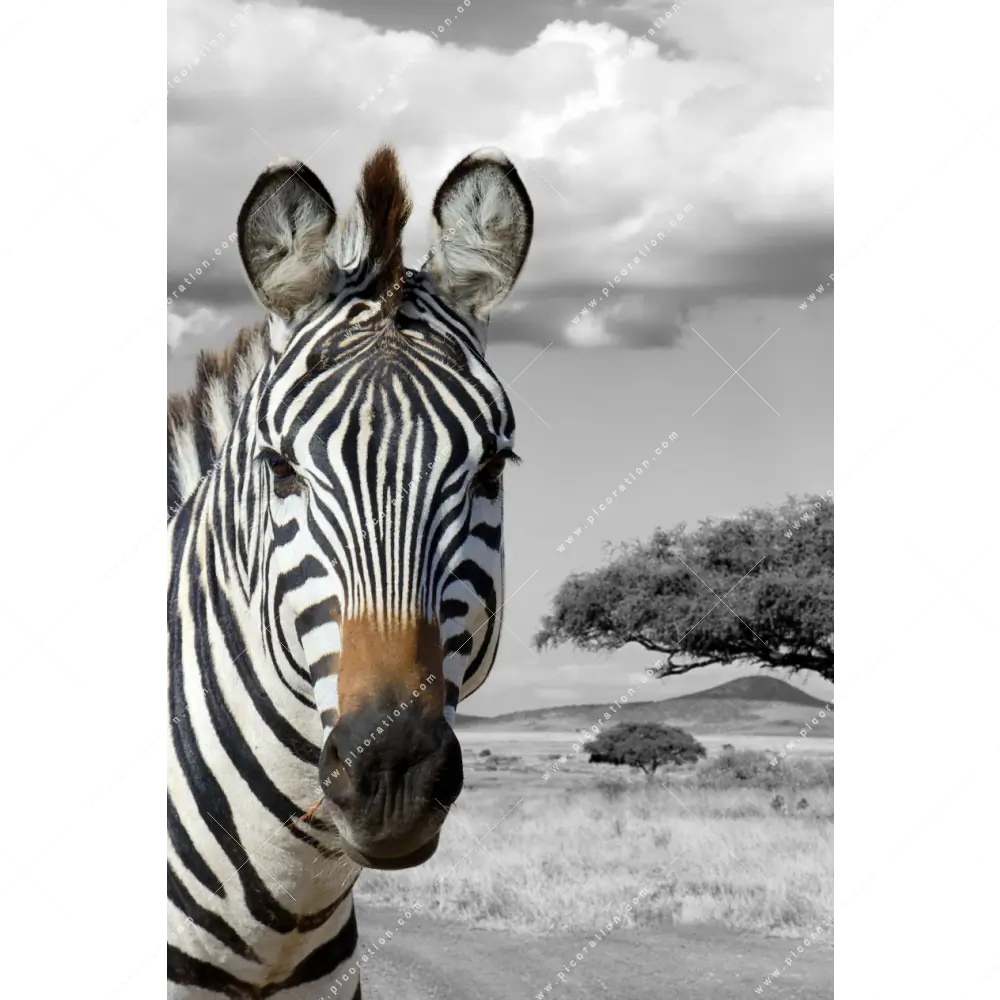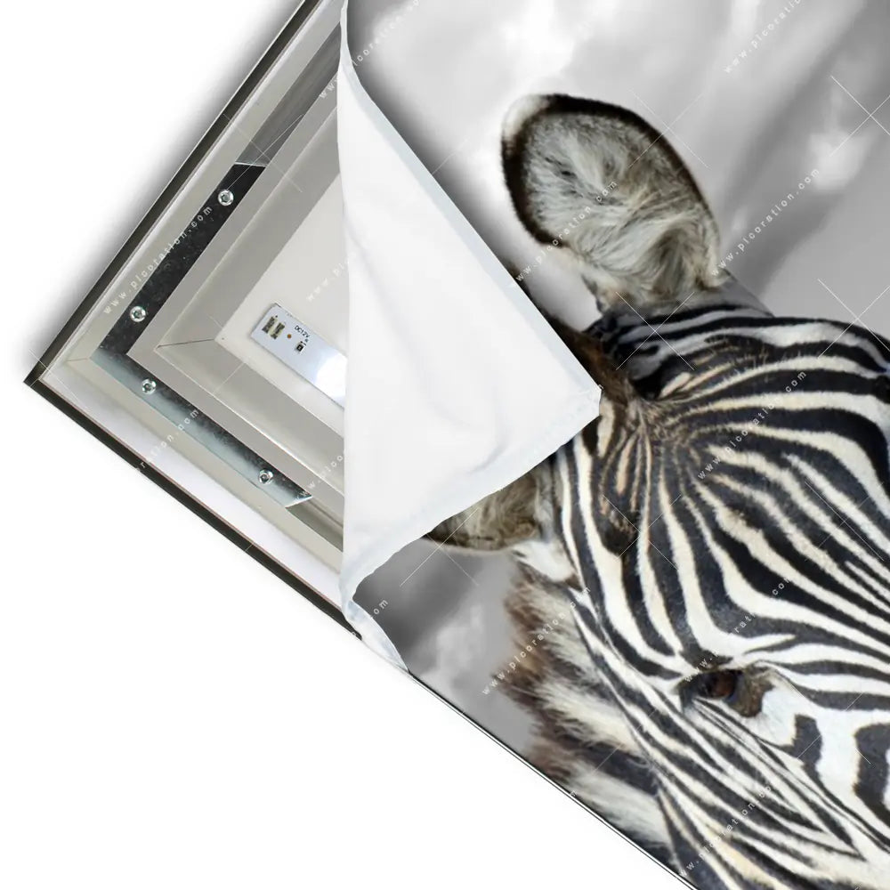 Das LED Wandbild mit dem Motiv Zebra in Afrika der Kategorie Landschaften, Tierwelt ist ein besonders beeindruckendes Wandbild mit LED-Beleuchtung, denn Zebra-Porträt wirkt durch die feinen LED´s hinter der textilen Oberfläche des Wandbildes noch intensiver und faszinierender auf den Betrachter. Unterstützt wird diese Wirkung des Wandbildes durch das Hochformat, welches in den Größen Maße zur Verfügung steht, um sich optimal an Ihre Wand anzuschmiegen und dem Raum ein neues Flair zu verleihen.
