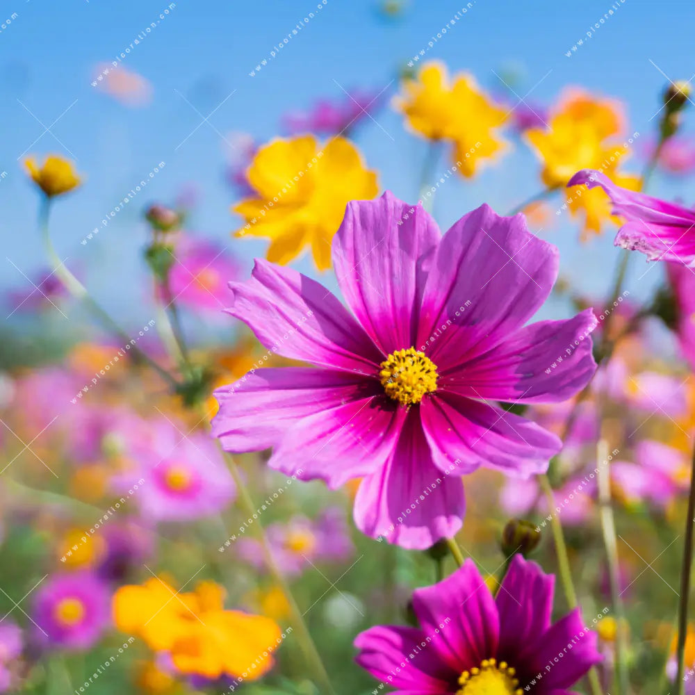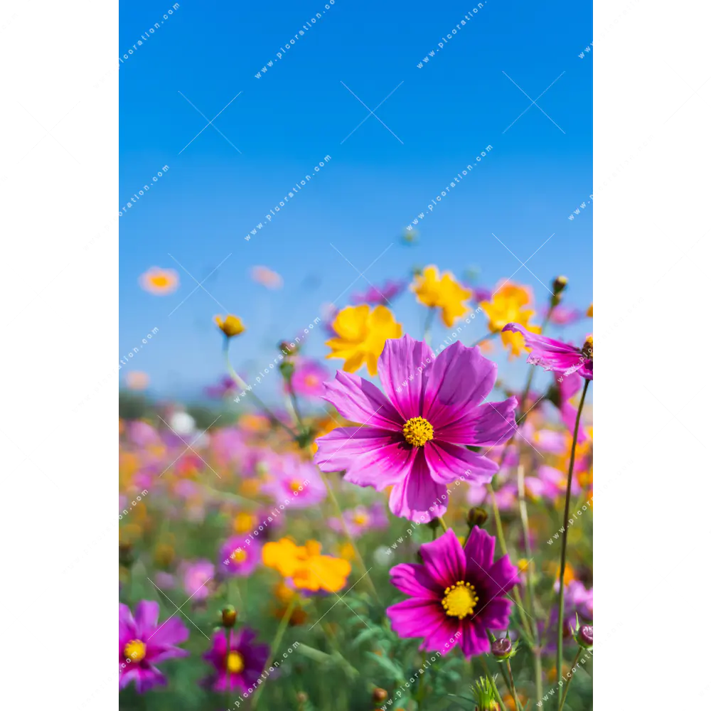 Unser atemberaubendes Motiv Blumenwiese unter blauem Himmel im Hochformat passt sich perfekt an Ihren Stil an und lässt Ihre Räume in neuem Glanz und Licht erstrahlen. Mit diesem Textil-Ersatzdruck Gelbe und rosafarbene Feldblumen für Ihr hochformatiges Wandbild können Sie Ihre Arzt - Praxis, Wohnzimmer - Schlafzimmer, Flur - Eingangsbereich, Büro - Kanzlei, Friseur - Beauty größer, höher und geräumiger wirken lassen, was sich vor allem bei kleinen Räumen anbietet. Nicht nur räumliche Größe verschaffen Sie sich mit diesem einfachen Motivwechsel bei Ihrem Wandbild, sondern auch großen Charakter und Widererkennungswert. Unser Ersatzmotiv Sommerblumen im Hochformat lässt auch keine Gemütlichkeit und Gelassenheit weichen, im Gegenteil - unsere neuen Wandbild-Motive schaffen noch mehr Wohlfühlcharakter.