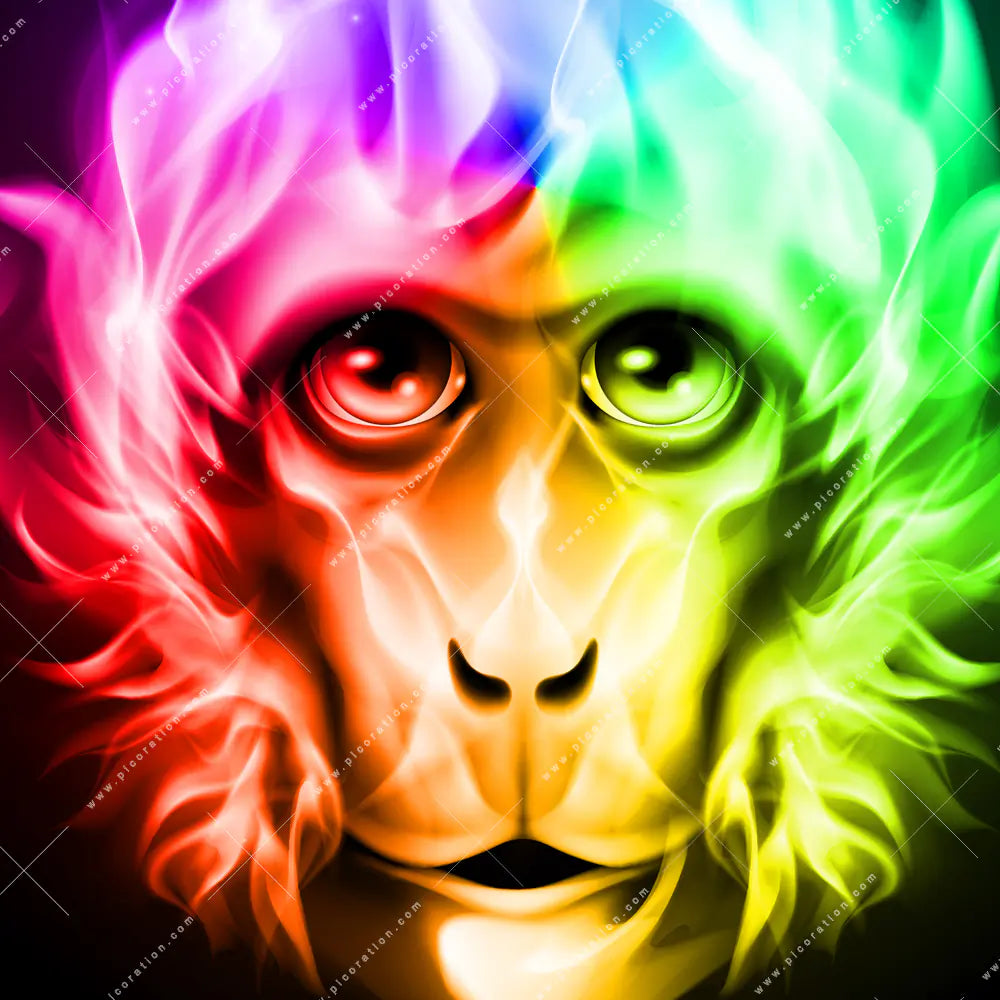 Unser quadratisches Motiv Bunter Feuer-Affe jetzt in Ihrem Bar - Gastronomie, Wohnzimmer - Schlafzimmer, Flur - Eingangsbereich