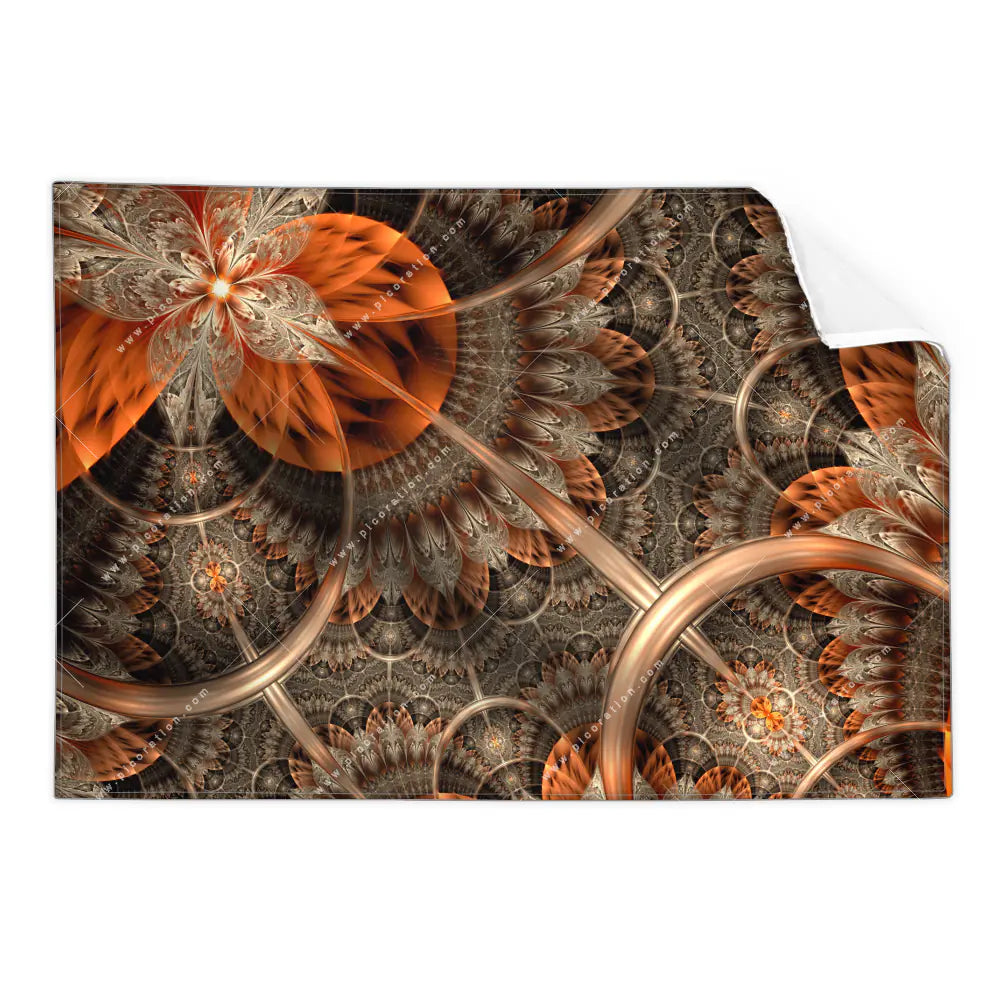 Unser Stoff-Ersatzmotiv Zusammenspiel von Mandalas im Querformat sorgt durch die Farben Beige, Orange, Braun, Rot, Silber für eine gemütliche und ganz besondere Atmosphäre in Ihrem Raum. Schaffen Sie mit Ihrem neuen Wandbild-Motiv eine atemberaubende Wohlfühlatmosphäre!