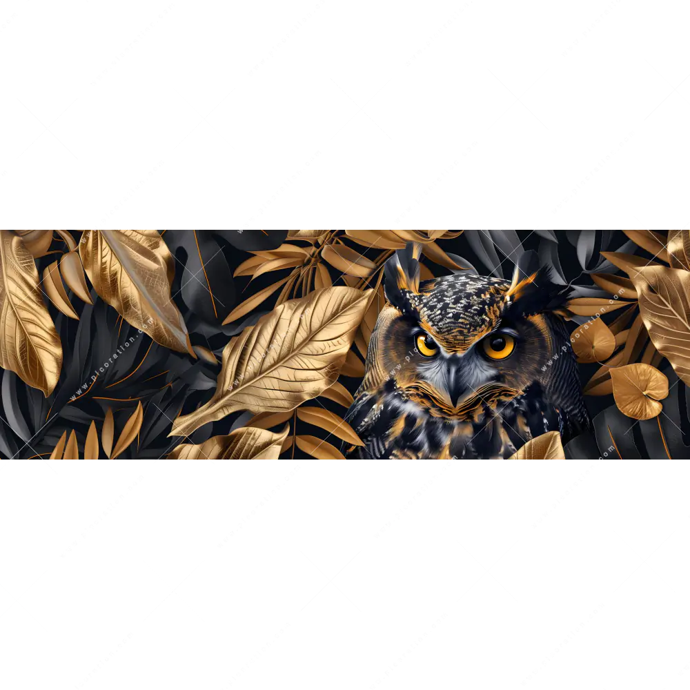 Textil-Ersatzdruck | Eule und goldene Blätter | Panorama