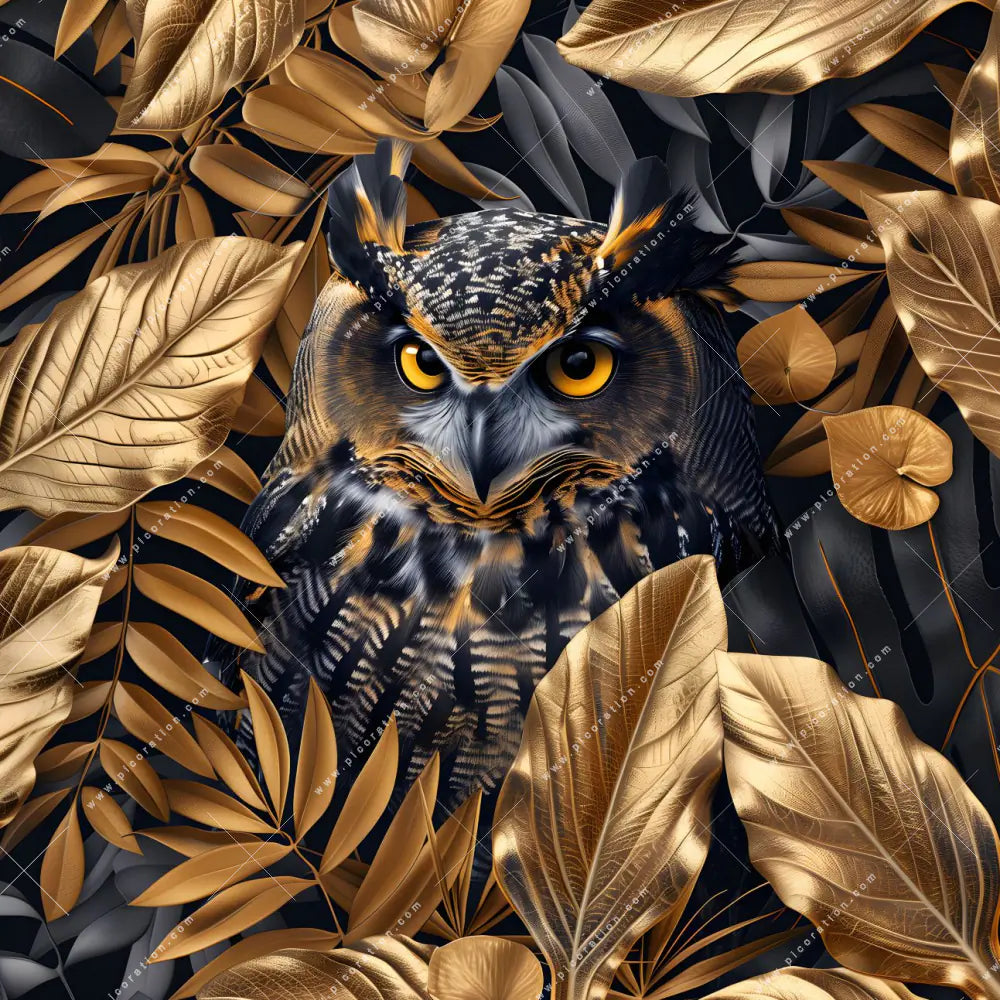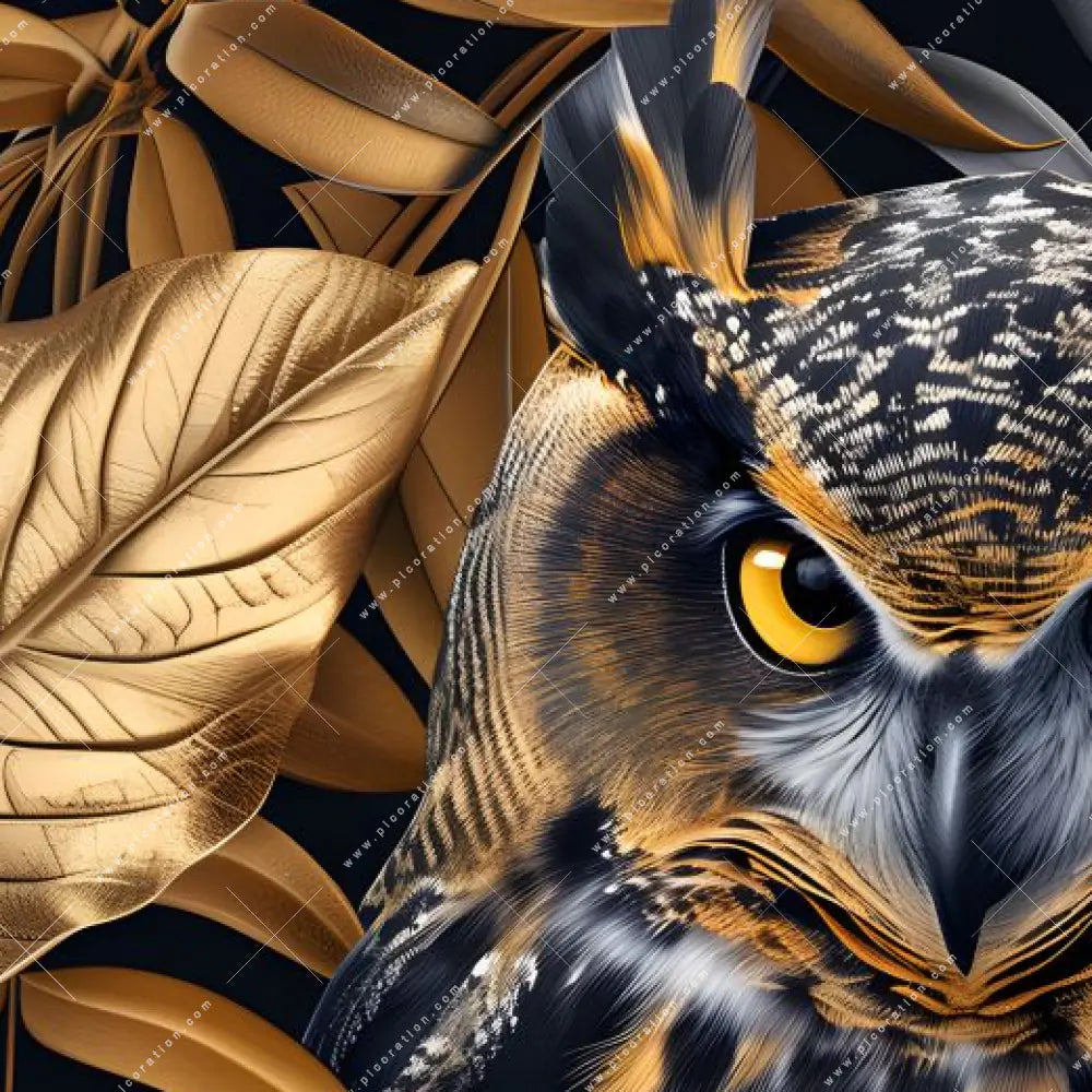 Unser quadratisches Motiv Eule und goldene Blätter jetzt in Ihrem Wohnzimmer - Schlafzimmer, Flur - Eingangsbereich, Arzt - Praxis