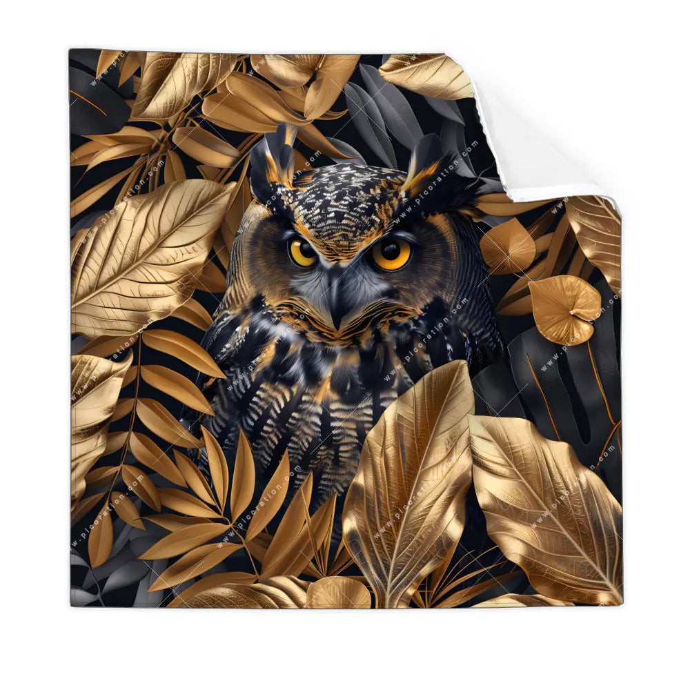 Textil-Ersatzdruck | Eule und goldene Blätter | Quadrat