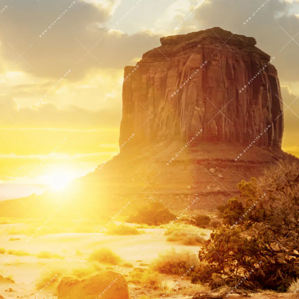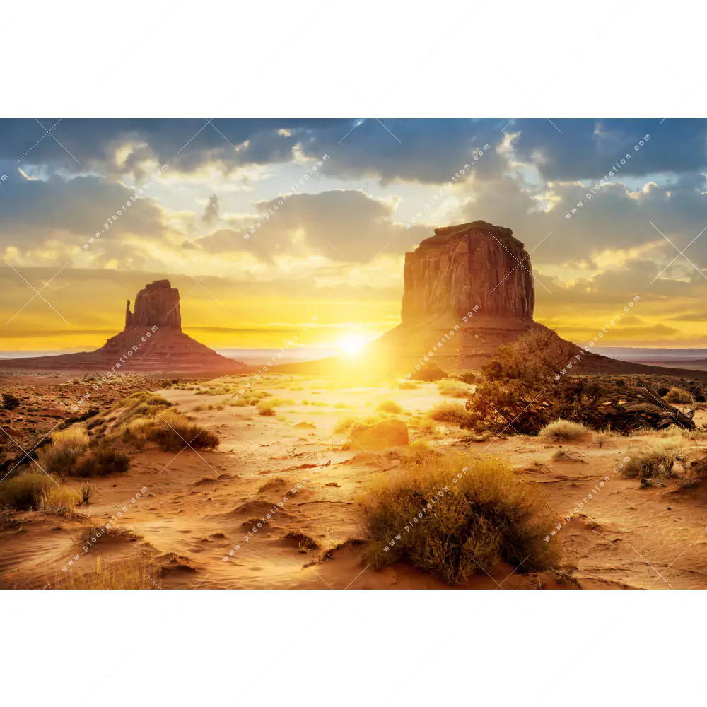 Lust auf einen frischen Wind in Ihrem Raum? Ihr neues Wandbild im Querformat wird mit unserem Textilersatzdruck Felsen in Wüste perfekt und erfrischt Ihr Arzt - Praxis, Bar - Gastronomie, Büro - Kanzlei, Flur - Eingangsbereich, Wohnzimmer - Schlafzimmer. Bringen Sie Wohlfühlatmosphäre in Ihr Zuhause, Ihr Büro oder Ihre Praxis, indem Sie einfach mit nur wenigen Handgriffen das Textil-Bild auswechseln. Mit dem Textil-Ersatzdruck Monument Valley Felsen in der Abendsonne haben Sie im Handumdrehen ein neues Wandbild und können das Motiv auch künftig jederzeit nach Ihren Wünschen, Gefühlen und Vorstellungen anpassen.