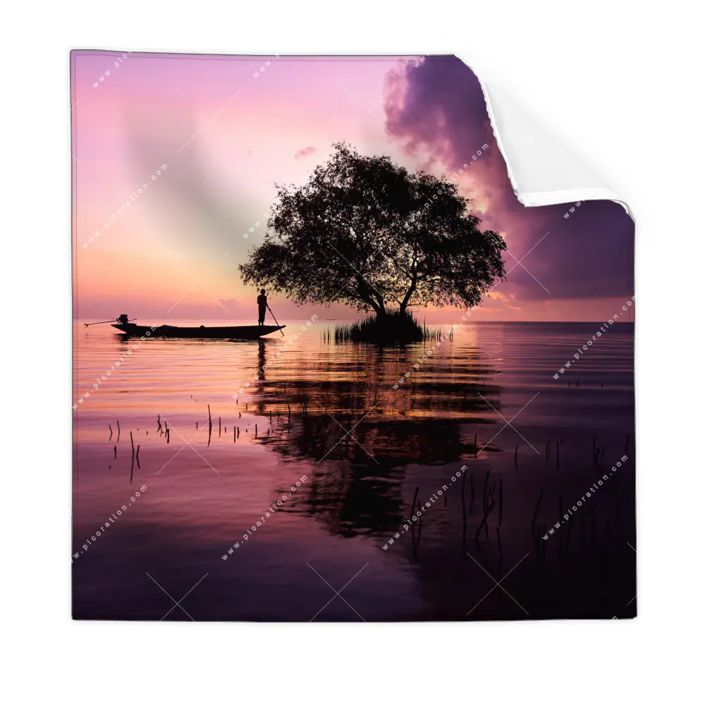 Textil-Ersatzdruck | Fischer auf Boot Sonnenaufgang | Quadrat