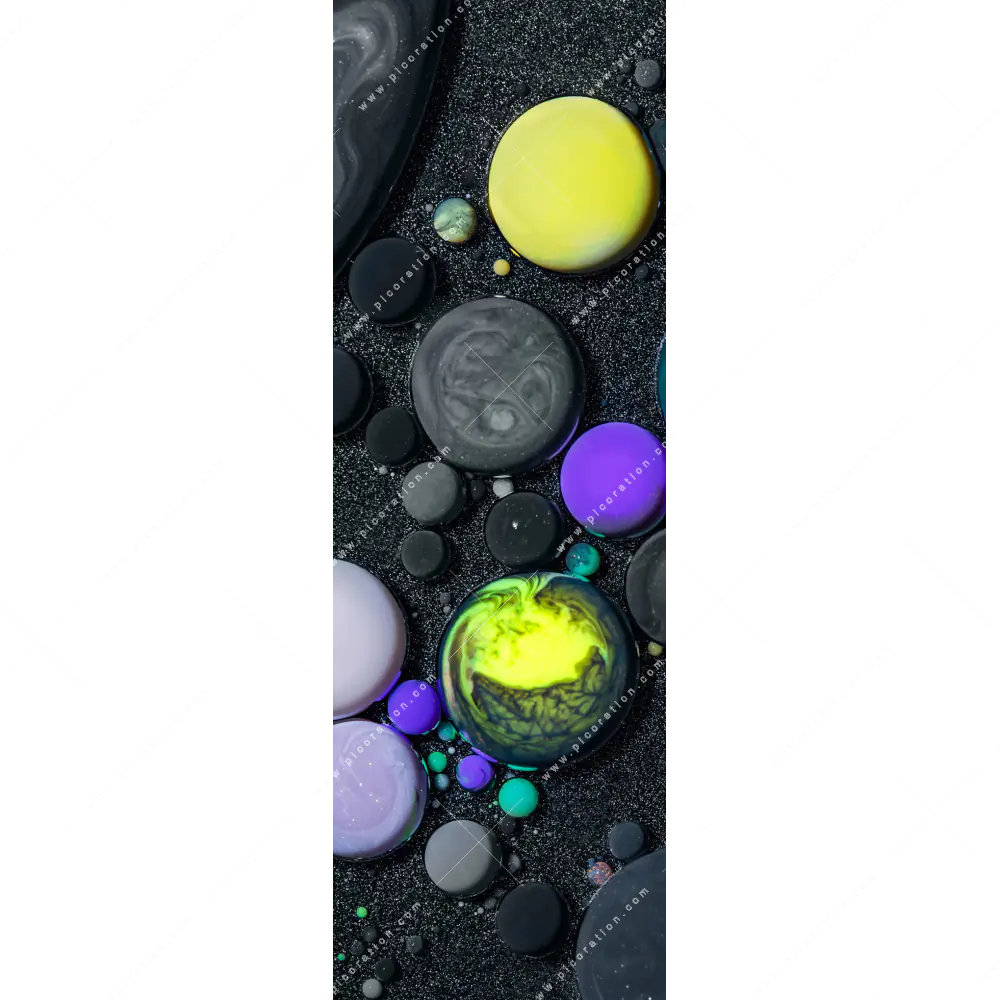 Bringen Sie Vielfalt in Ihren Raum mit unseren Textil-Ersatzdrucken für Ihr Wandbild im Panorama Hochformat. Insbesondere unser Fluid Art - Bubbless No.1 ist ein atemberaubendes Motiv, das zu jedem Stil passt und Ihrem Arzt - Praxis, Büro - Kanzlei, Wohnzimmer - Schlafzimmer, Bar - Gastronomie, Friseur - Beauty neues Leben einhaucht. Mit dem abstrakte Kugeln im Sand Textil-Ersatzdruck für Ihr Wandbild können Sie Ihre Räume hoch und beeindruckend erscheinen lassen. Das ist besonders bei flachen Räumen ein Vorteil, doch auch in hohen Räumen wirkt das Panorama-Hochformat mit dem Motiv dunkle Farbblasen mit blau-gelb-türkisen Highlights aus der Kategorie Muster - Texturen als besonderes Highlight. Raumcharakter und Widererkennungswert werden durch den Textil-Ersatzdruck mit dem Motiv Fluid Painting - schwarze Bubbles in der Größe Maße besonders hervorgehoben und betont.