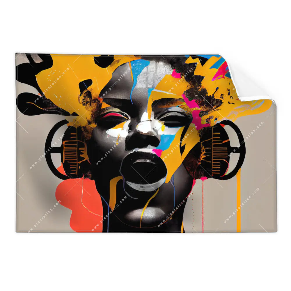 Buntes Gesicht einer musikalischen Frau an Ihrer Wand – einfach als Textil-Ersatz-Bezug für Ihr Wandbild