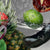 Schwimmende Gemüse-Vielfalt als Textil-Ersatzdruck