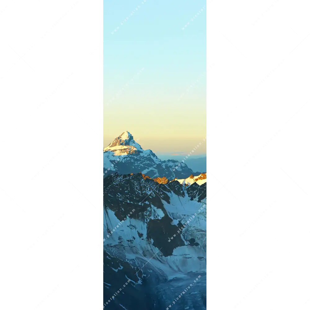 Bringen Sie Vielfalt in Ihren Raum mit unseren Textil-Ersatzdrucken für Ihr Wandbild im Panorama Hochformat. Insbesondere unser Gipfel in den Alpen ist ein atemberaubendes Motiv, das zu jedem Stil passt und Ihrem Arzt - Praxis, Büro - Kanzlei, Wohnzimmer - Schlafzimmer, Bar - Gastronomie neues Leben einhaucht. Mit dem Bergspitzen Textil-Ersatzdruck für Ihr Wandbild können Sie Ihre Räume hoch und beeindruckend erscheinen lassen. Das ist besonders bei flachen Räumen ein Vorteil, doch auch in hohen Räumen wirkt das Panorama-Hochformat mit dem Motiv Berggipfel aus der Kategorie Landschaften als besonderes Highlight. Raumcharakter und Widererkennungswert werden durch den Textil-Ersatzdruck mit dem Motiv felsige Berge mit Schnee in der Größe Maße besonders hervorgehoben und betont.