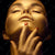 sinnliche Frau in Gold als Textilersatzdruck sorgt für eine atemberaubende Atmosphäre