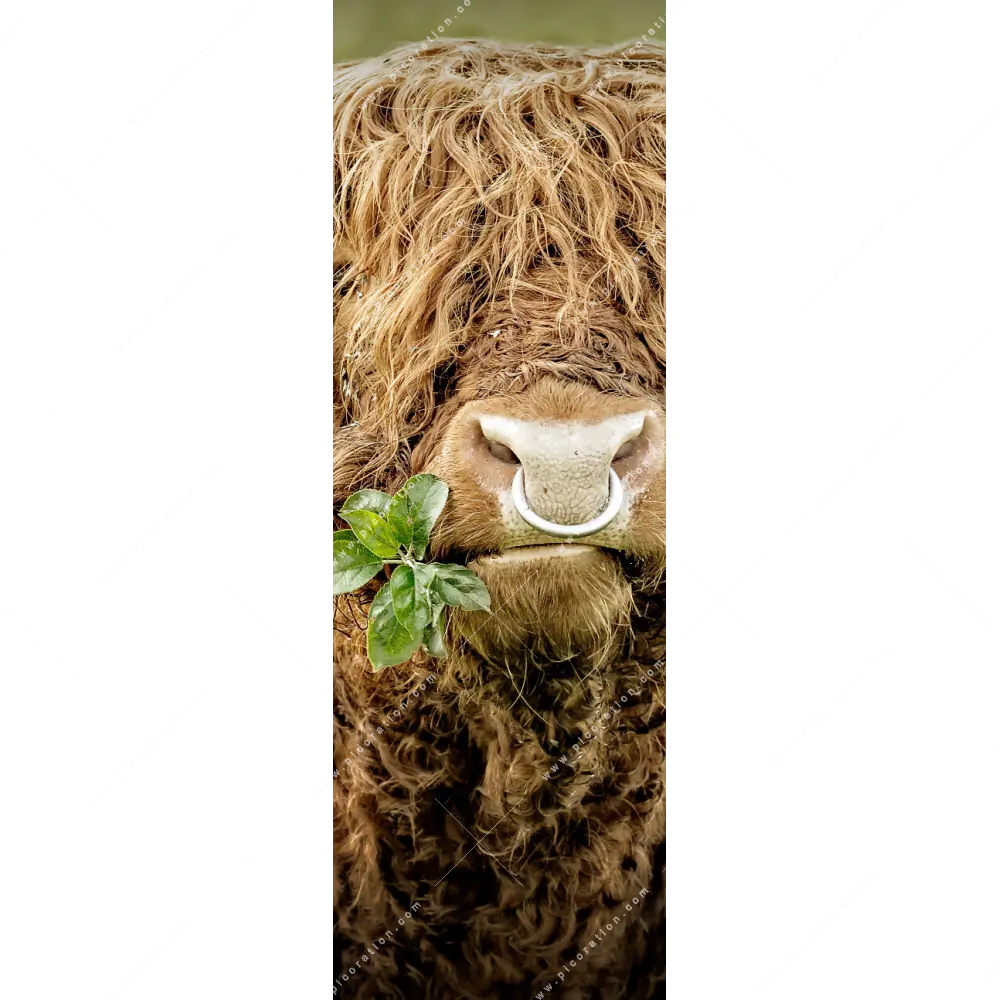 Bringen Sie Vielfalt in Ihren Raum mit unseren Textil-Ersatzdrucken für Ihr Wandbild im Panorama Hochformat. Insbesondere unser Hochland-Rind mit Nasenring ist ein atemberaubendes Motiv, das zu jedem Stil passt und Ihrem Bar - Gastronomie, Wohnzimmer - Schlafzimmer neues Leben einhaucht. Mit dem Hochlandrind mit Pflanze im Maul Textil-Ersatzdruck für Ihr Wandbild können Sie Ihre Räume hoch und beeindruckend erscheinen lassen. Das ist besonders bei flachen Räumen ein Vorteil, doch auch in hohen Räumen wirkt das Panorama-Hochformat mit dem Motiv fressendes Hochlandrind aus der Kategorie Tierwelt als besonderes Highlight. Raumcharakter und Widererkennungswert werden durch den Textil-Ersatzdruck mit dem Motiv fressendes Langhaar-Rind in der Größe Maße besonders hervorgehoben und betont.