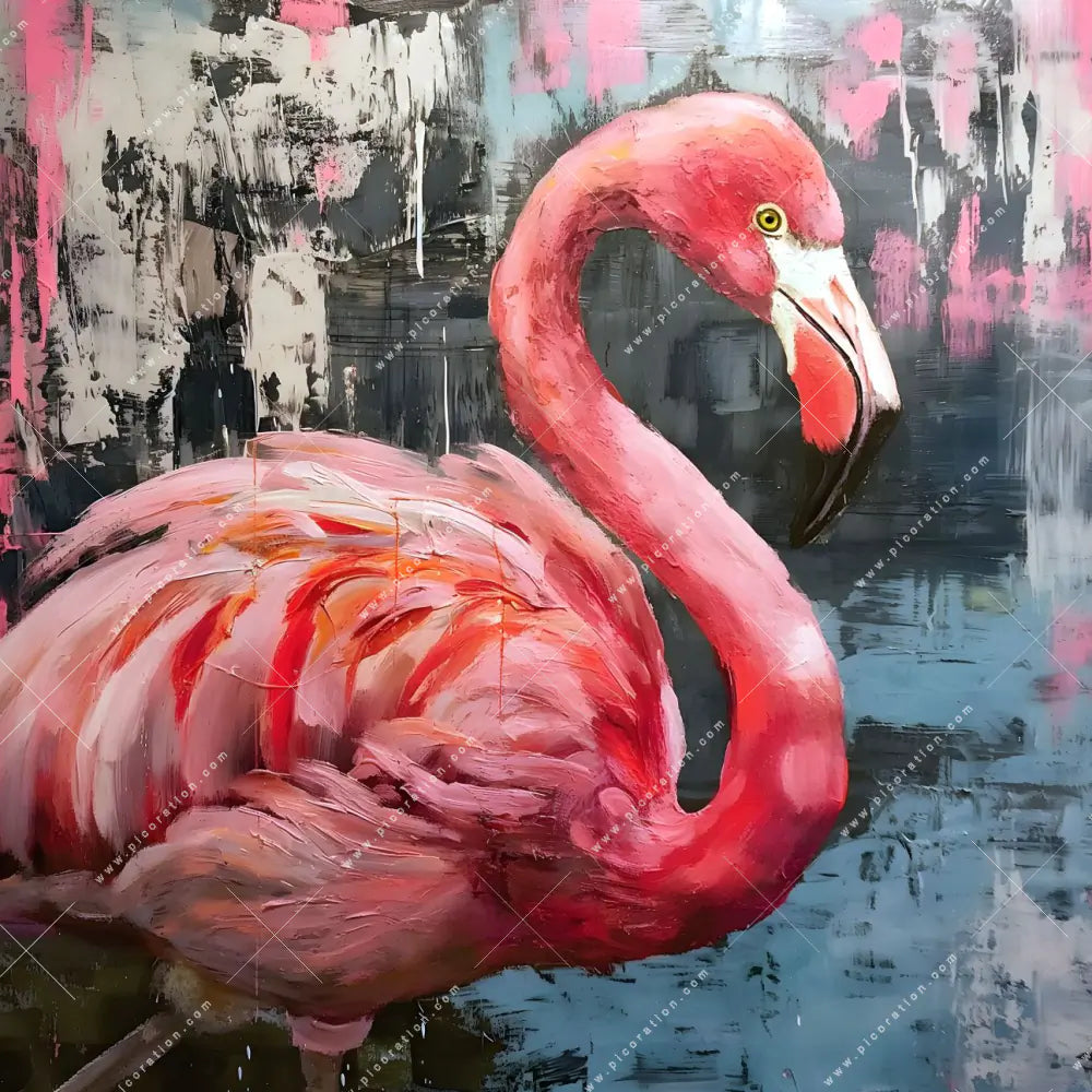 Unser quadratisches Motiv Kunstvoller Flamingo jetzt in Ihrem Flur - Eingangsbereich, Wohnzimmer - Schlafzimmer, Bar - Gastronomie