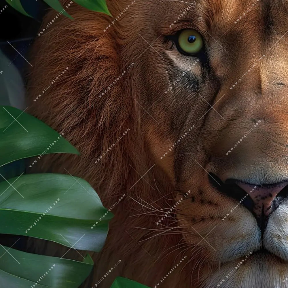 - Schlagwörter: Raubkatze, Löwe, Afrika, Lion, Tierporträt, Safari, Dschungel, Regenwald, Monstera, Blätter