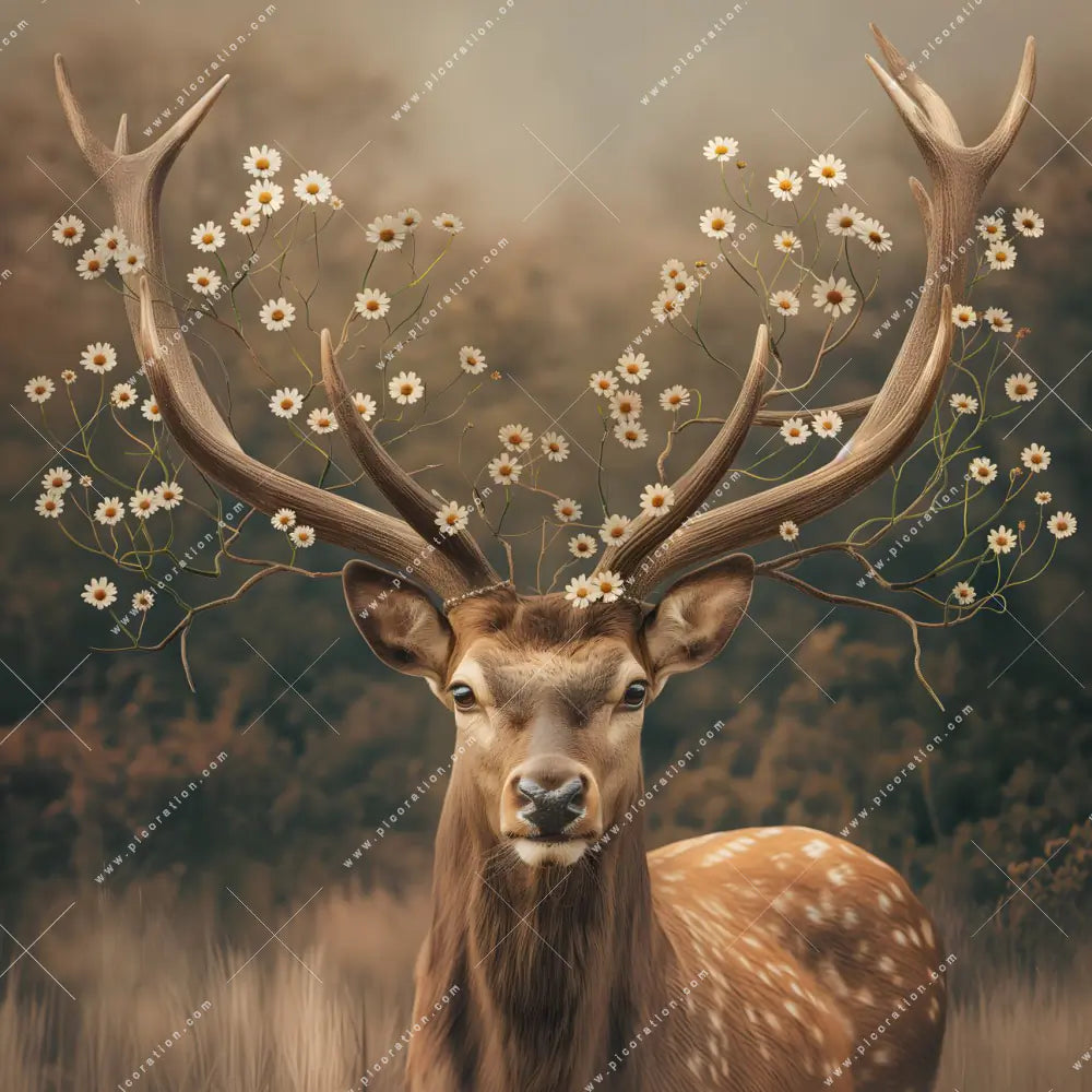 Wir wissen, dass eine ästhetische Erneuerung Ihres Flur - Eingangsbereich, Wohnzimmer - Schlafzimmer, Arzt - Praxis überwältigend sein kann, deshalb wollten wir Ihnen ein Produkt anbieten, das sowohl praktisch als auch schön ist. Unser Textilersatzdruck bietet eine einzigartige Kombination aus hochwertigem Stil und Zugänglichkeit, was jeden Raum zu etwas Besonderem macht. Insbesondere der Textil-Ersatz-Druck mit dem Motiv Rotwild mit blumengeschmücktem Geweih sorgt in der Größe Maße und in der Farbgebung Beige, Braun, Weiss für eine ganz besondere Wohlfühlatmosphäre. Blumengekrönter Hirsch zählt zur Kategorie Tierwelt, Blumen - Botanik, Landschaften und wirkt in dem Floral, Retro - Vintage, Surreal - Fantasy Stil der Digitale Kunst noch beeindruckender, sodass Sie Ihrem Zuhause oder Arbeitsplatz mit der Wahl dieses Motiv-Ersatzes aus Textil in jedem Falle ein atemberaubendes Flair verleihen.