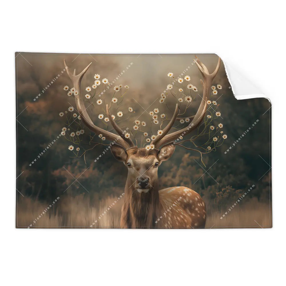 Blumengekrönter Hirsch an Ihrer Wand – einfach als Textil-Ersatz-Bezug für Ihr Wandbild