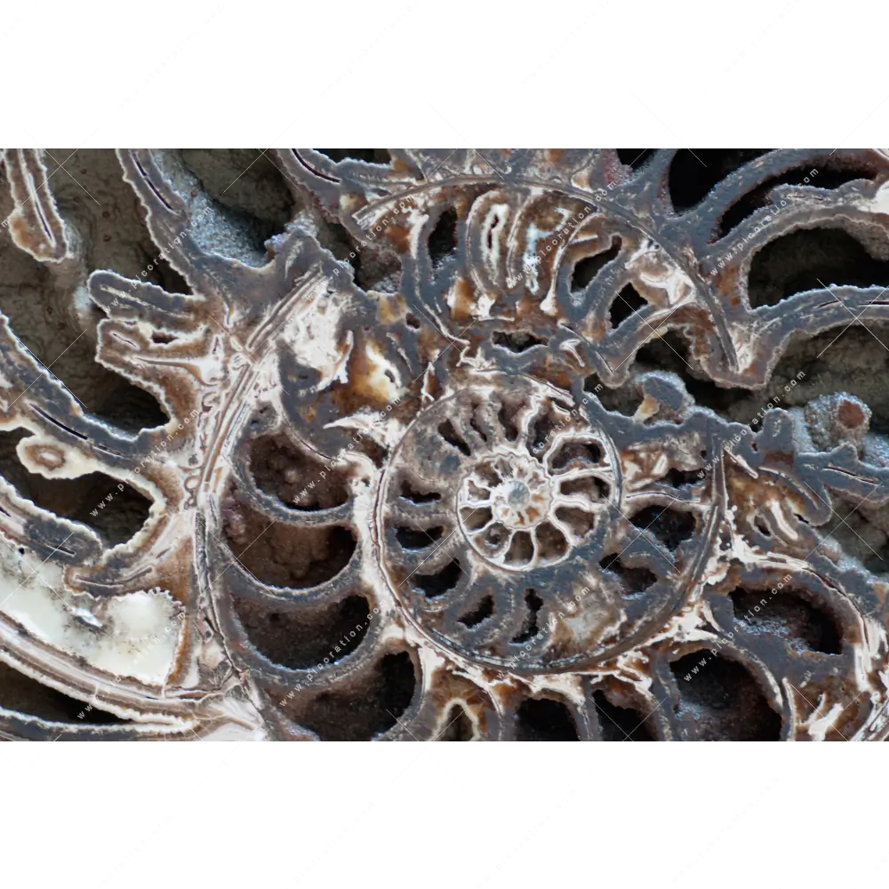 Unser Stoff-Ersatzmotiv spiralförmiges, antikes Gesteinsgebilde im Querformat sorgt durch die Farben Gold, Braun, Beige, Schwarz für eine gemütliche und ganz besondere Atmosphäre in Ihrem Raum. Schaffen Sie mit Ihrem neuen Wandbild-Motiv eine atemberaubende Wohlfühlatmosphäre!
