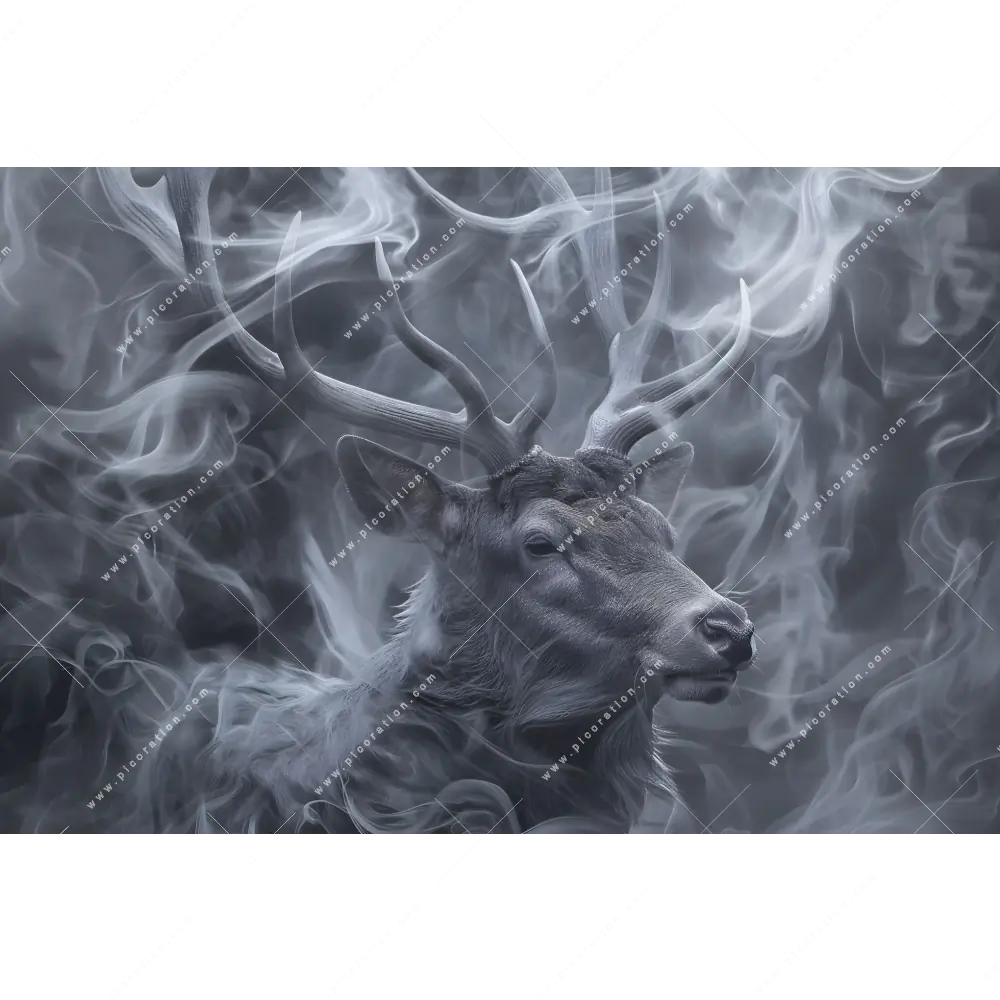 Magischer Hirsch mit Rauch an Ihrer Wand – einfach als Textil-Ersatz-Bezug für Ihr Wandbild