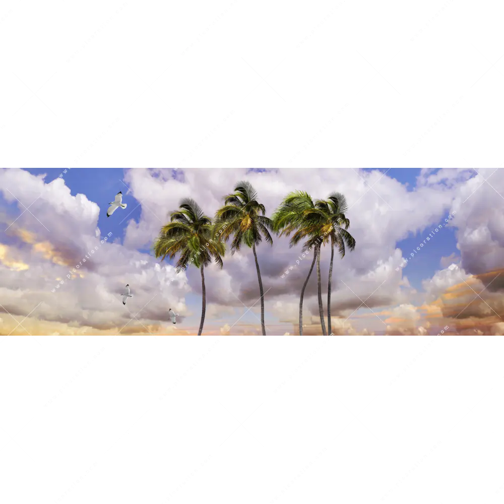 Haben Sie sich an Ihrem bestehenden Panorama-Wandbild satt gesehen und möchten Sie Ihre Wand wieder mit einem neuen atemberaubenden Panoramawandbild erstrahlen lassen? Dann ist unser Textilersatzdruck Palmen auf Insel für Wandbilder im Panoramaformat genau das Richtige für Sie, um wieder Leben und Energie in Ihren Raum auf Arbeit oder zu Hause zu bringen.