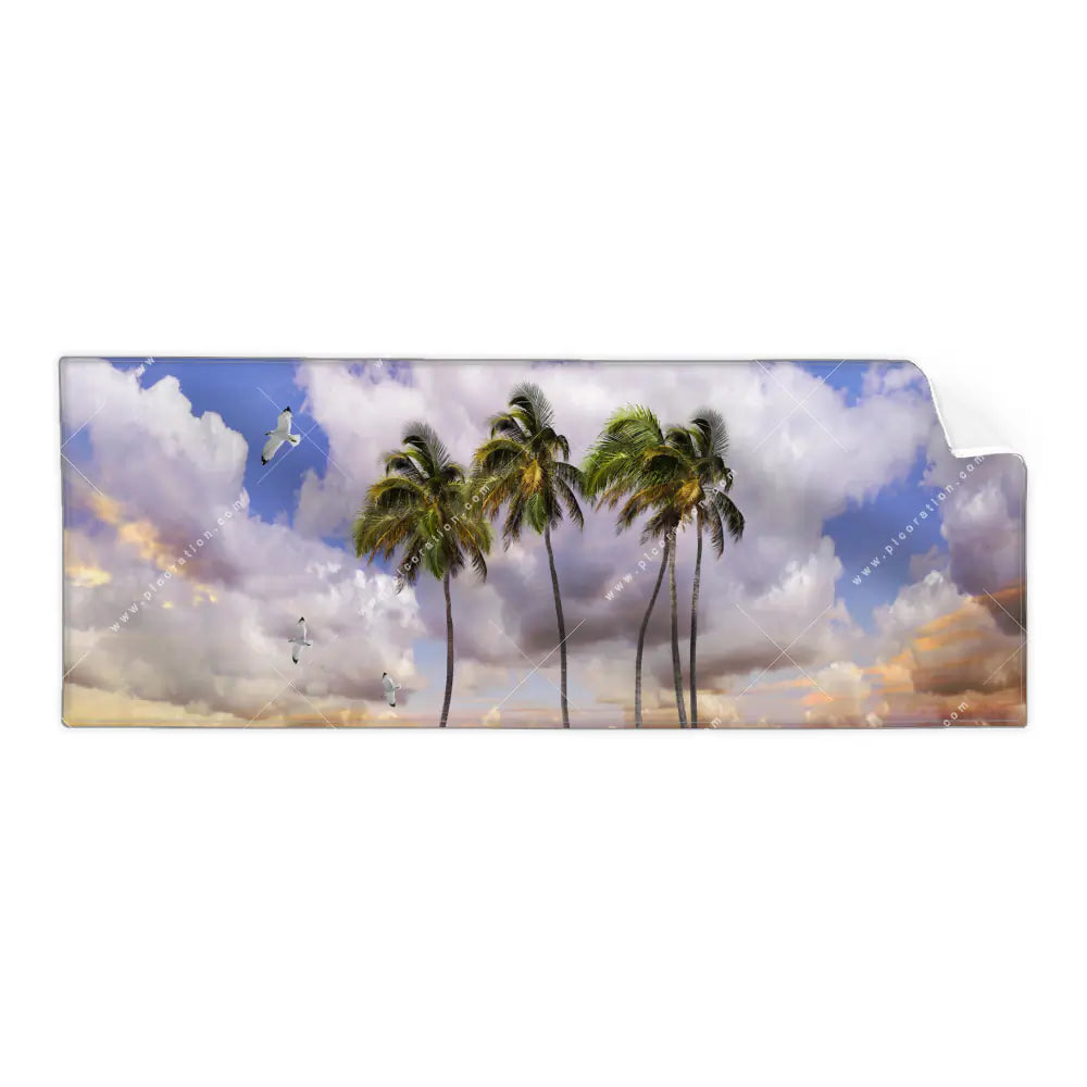 Bringen Sie Farbe und Tiefe in Ihre Welt mit unserem Textilersatzdruck Strandpalmen im Sommerwind für Ihr Wandbild im Panoramaformat. Dank seiner überragenden Langlebigkeit, dem strapazierfähigen Stoffmaterial und der großen Auswahl an Größen können Sie sich darauf verlassen, dass es ein stilvolles Update ist, das den Test der Zeit bestehen wird! Insbesondere das Motiv Palmen und Möwen am Meer der Kategorie Landschaften, Strand - Meer erstrahlt in den Farben Blau, Lila, Orange, Weiss, wodurch der Retro - Vintage Stil der Digitale Kunst noch mehr zur Geltung kommt und eine ganz besondere, atemberaubende Atmosphäre in Ihrem Raum entsteht.