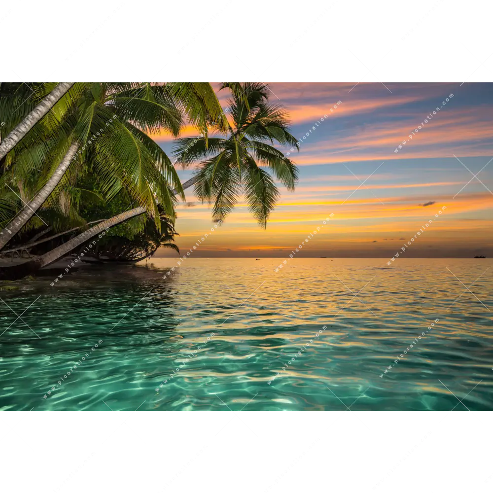 Sie haben nach Palmen, Horizont, Ozean, Insel, Meer, Sommer, Südsee - Karibik, Urlaub - Reisen, Sonnenuntergang - Sonnenaufgang gesucht? Dann sind Sie mit unserem Ersatzbezug aus Textil für Ihr querformatiges Wandbild nun fündig geworden! Unser Wechselbezug Paradiesische Insel aus der Kategorie Landschaften, Strand - Meer begeistert die Betrachter und sorgt für einen neuen Stil – egal, ob beim Jahreszeitenwechsel oder weil es einfach etwas Neues sein soll.