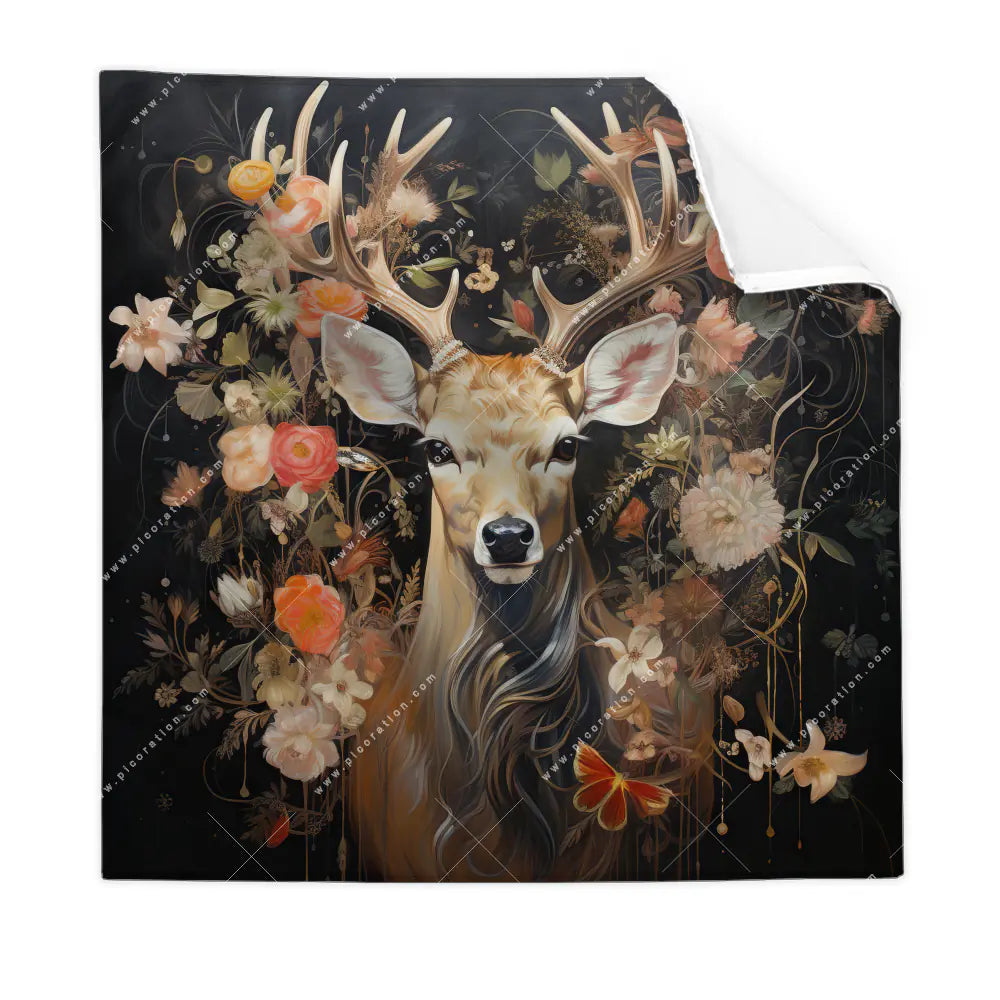 Textil-Ersatzdruck | Reh Blumen | Quadrat