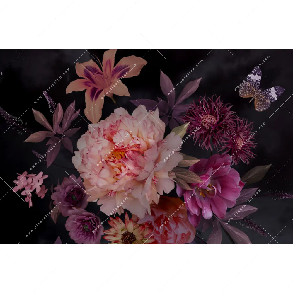Unser Stoff-Ersatzmotiv Pinke Blüten im Vintage-Stil im Querformat sorgt durch die Farben Schwarz, Pink, Rosa für eine gemütliche und ganz besondere Atmosphäre in Ihrem Raum. Schaffen Sie mit Ihrem neuen Wandbild-Motiv eine atemberaubende Wohlfühlatmosphäre!