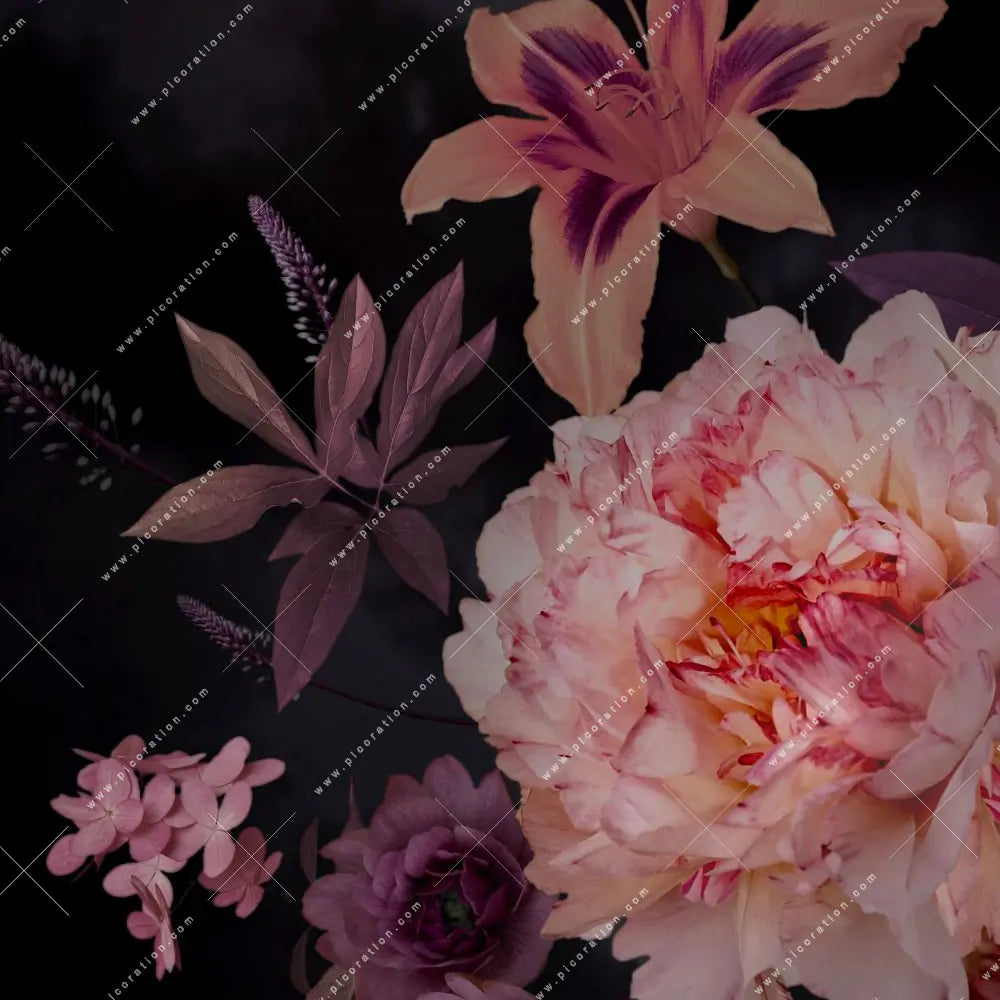 Blumen auf schwarzem Untergrund an Ihrer Wand – einfach als Textil-Ersatz-Bezug für Ihr Wandbild