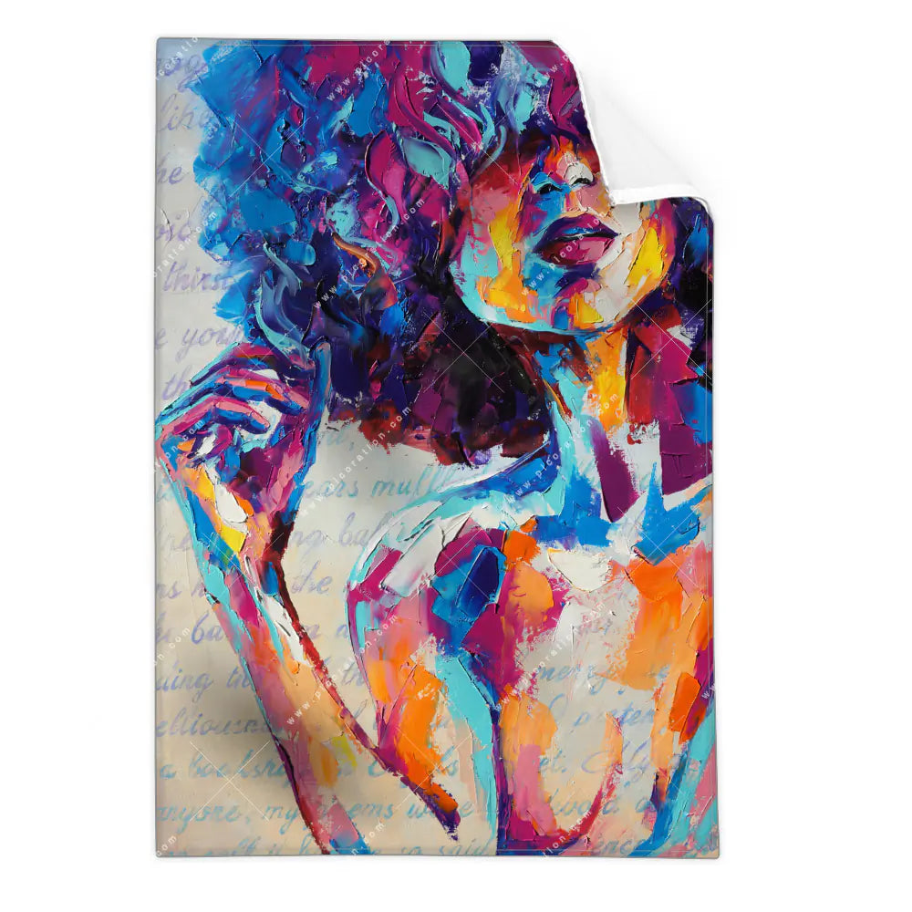 buntes Frauenporträt als Textil-Ersatzdruck