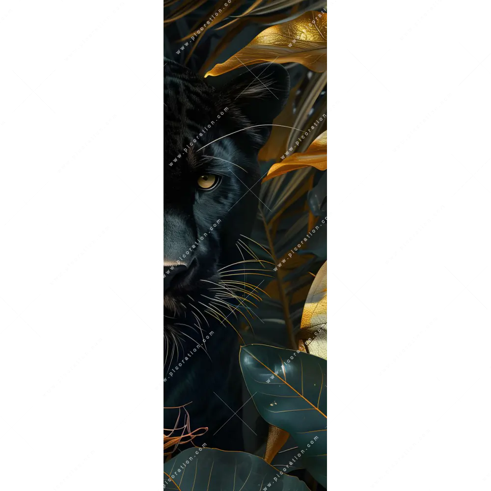 Textil-Ersatzdruck | Schwarzer Panther im Dschungel | Schmal