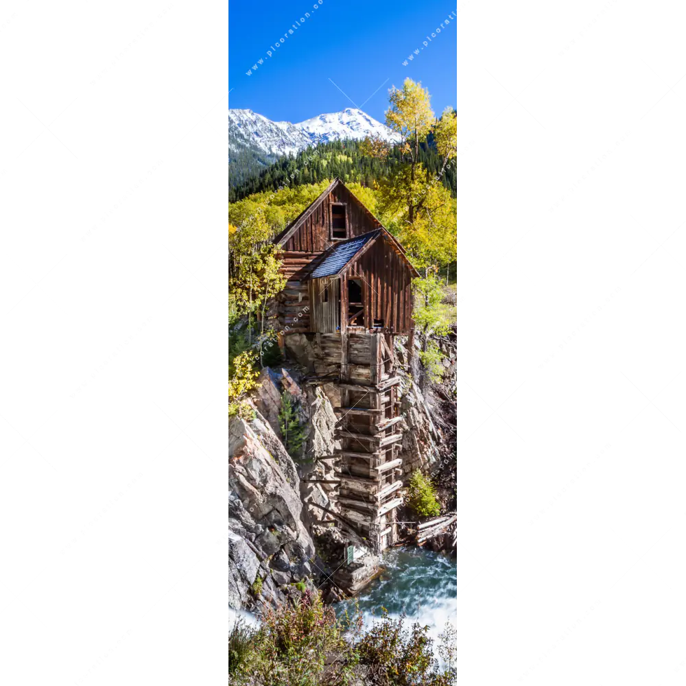 Bringen Sie Vielfalt in Ihren Raum mit unseren Textil-Ersatzdrucken für Ihr Wandbild im Panorama Hochformat. Insbesondere unser Waldhütte am Fluss ist ein atemberaubendes Motiv, das zu jedem Stil passt und Ihrem Arzt - Praxis, Büro - Kanzlei, Flur - Eingangsbereich, Wohnzimmer - Schlafzimmer neues Leben einhaucht. Mit dem Cristall Mill in Amerika Textil-Ersatzdruck für Ihr Wandbild können Sie Ihre Räume hoch und beeindruckend erscheinen lassen. Das ist besonders bei flachen Räumen ein Vorteil, doch auch in hohen Räumen wirkt das Panorama-Hochformat mit dem Motiv historische Waldhütte in Colorado aus der Kategorie Architektur - Gebäude, Landschaften als besonderes Highlight. Raumcharakter und Widererkennungswert werden durch den Textil-Ersatzdruck mit dem Motiv Abandon Kristallfabrik in den Bergen in der Größe Maße besonders hervorgehoben und betont.