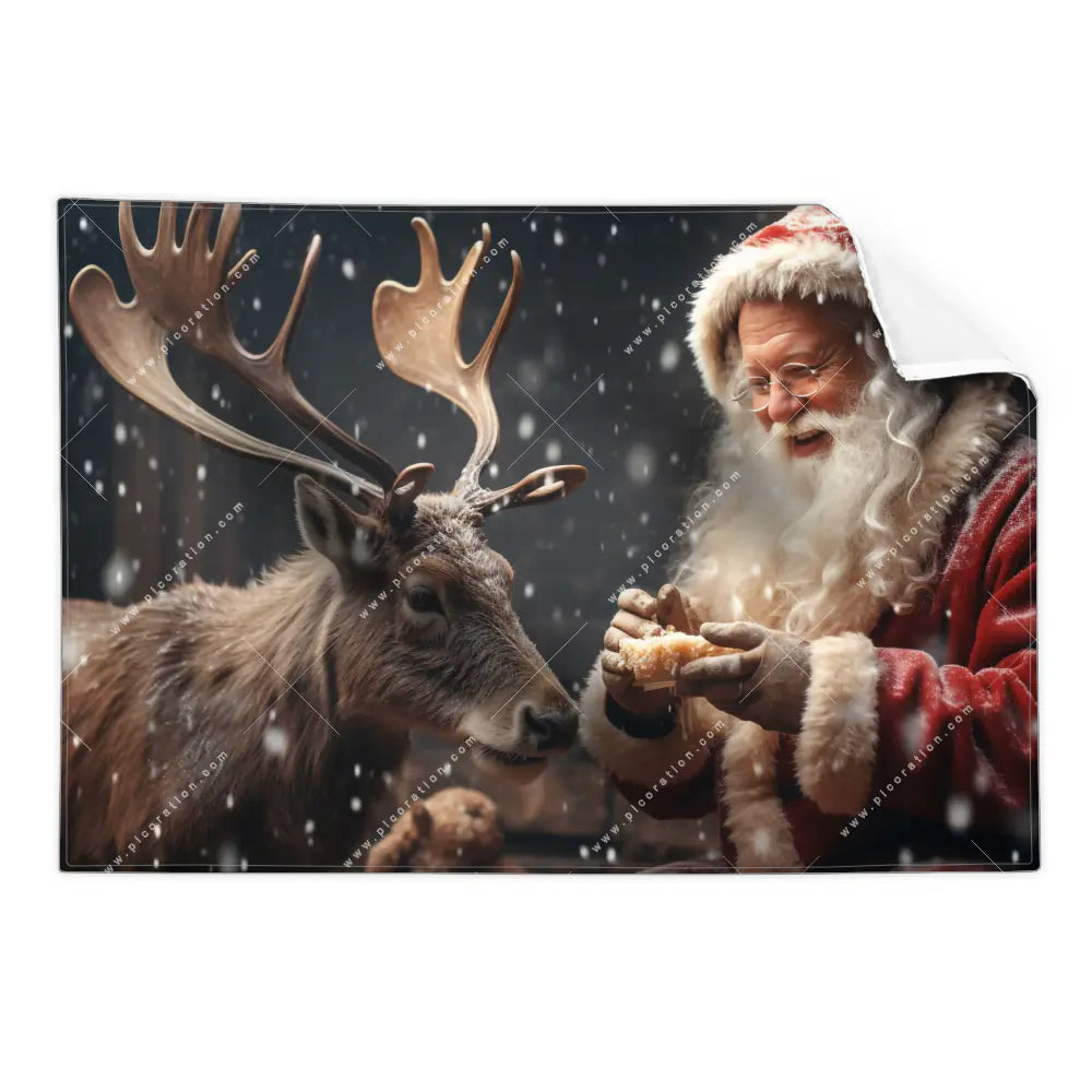 Textil-Ersatzdruck | Weihnachtsmann füttert Rentier | Querformat