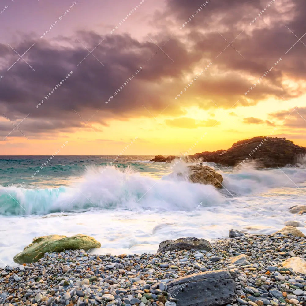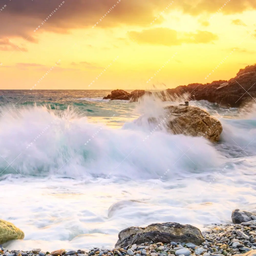 Unser quadratisches Motiv Wellen im Abendlicht jetzt in Ihrem Arzt - Praxis, Büro - Kanzlei, Wohnzimmer - Schlafzimmer