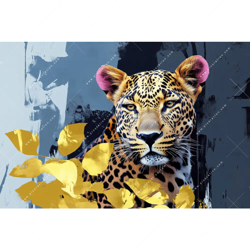 Beeindruckendes XXL Wandbild mit dem Motiv Leopard - Eleganz trifft Farbe