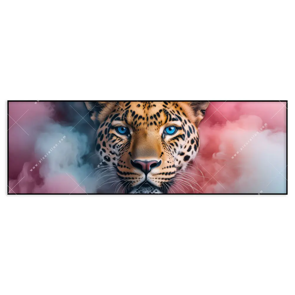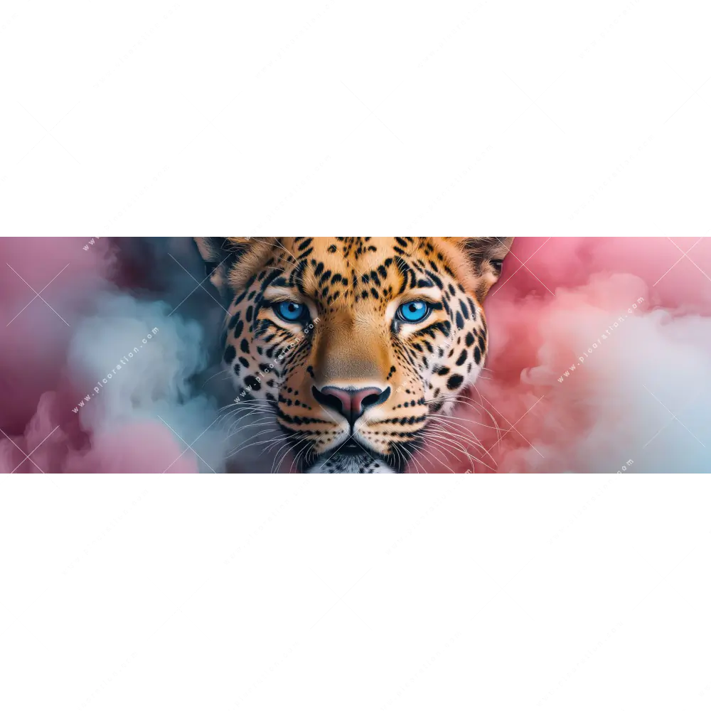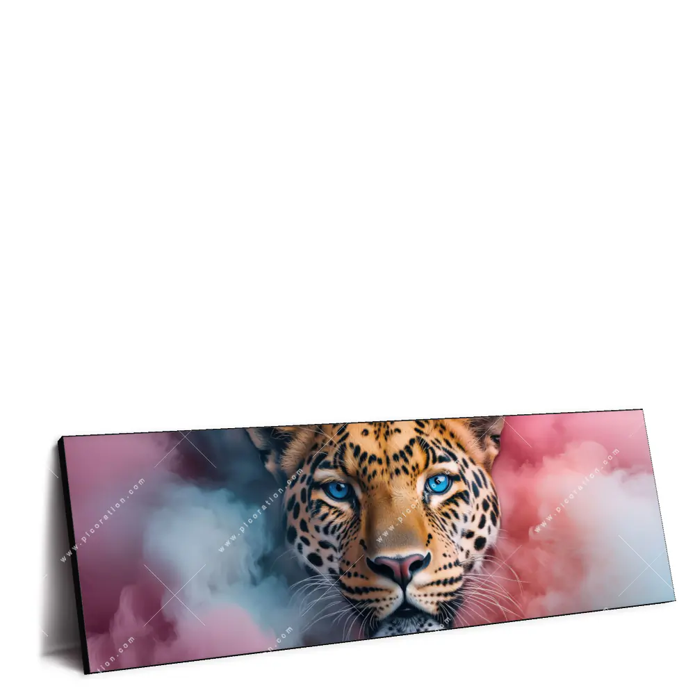 XXL-Wandbild | Leopard im Farbnebel | Panorama