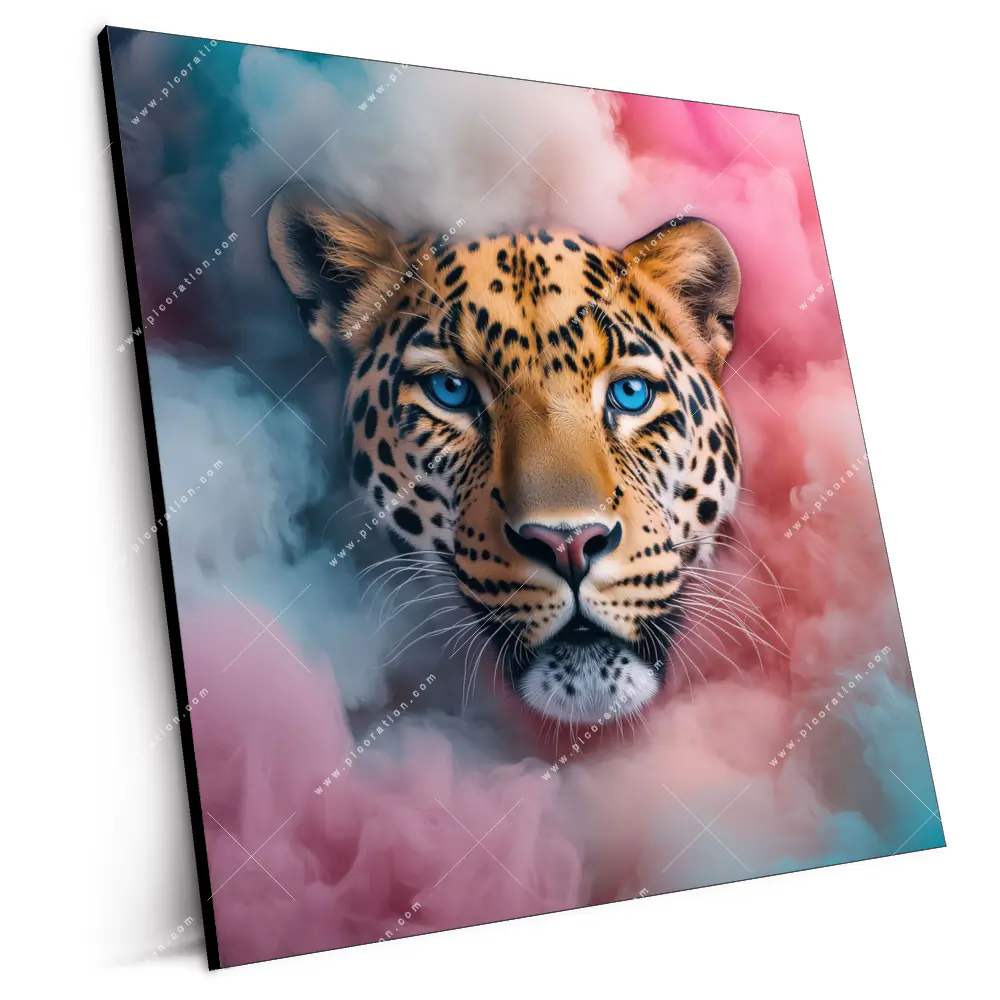 XXL-Wandbild | Leopard im Farbnebel | Quadrat