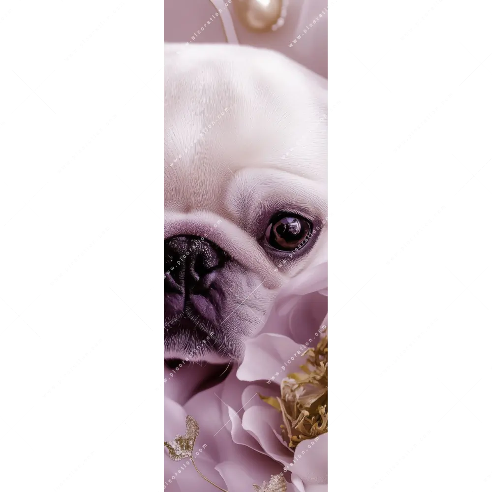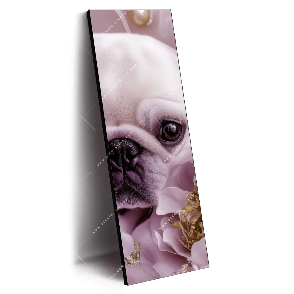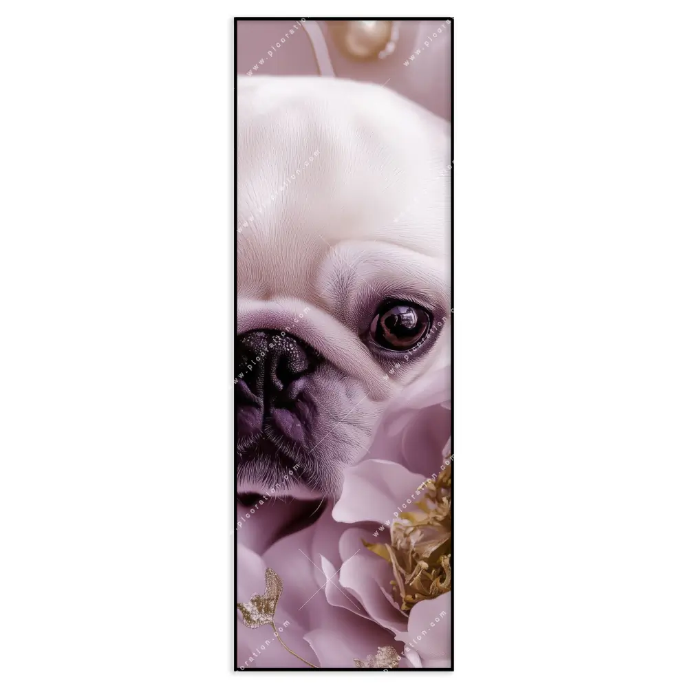 XXL-Wandbild | Mops im Blütenmeer | Schmal
