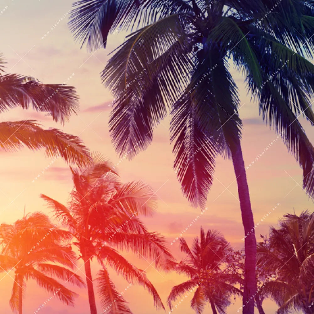 Palmen bei Sonnenuntergang als XXL-Wandbild im Hochformat
