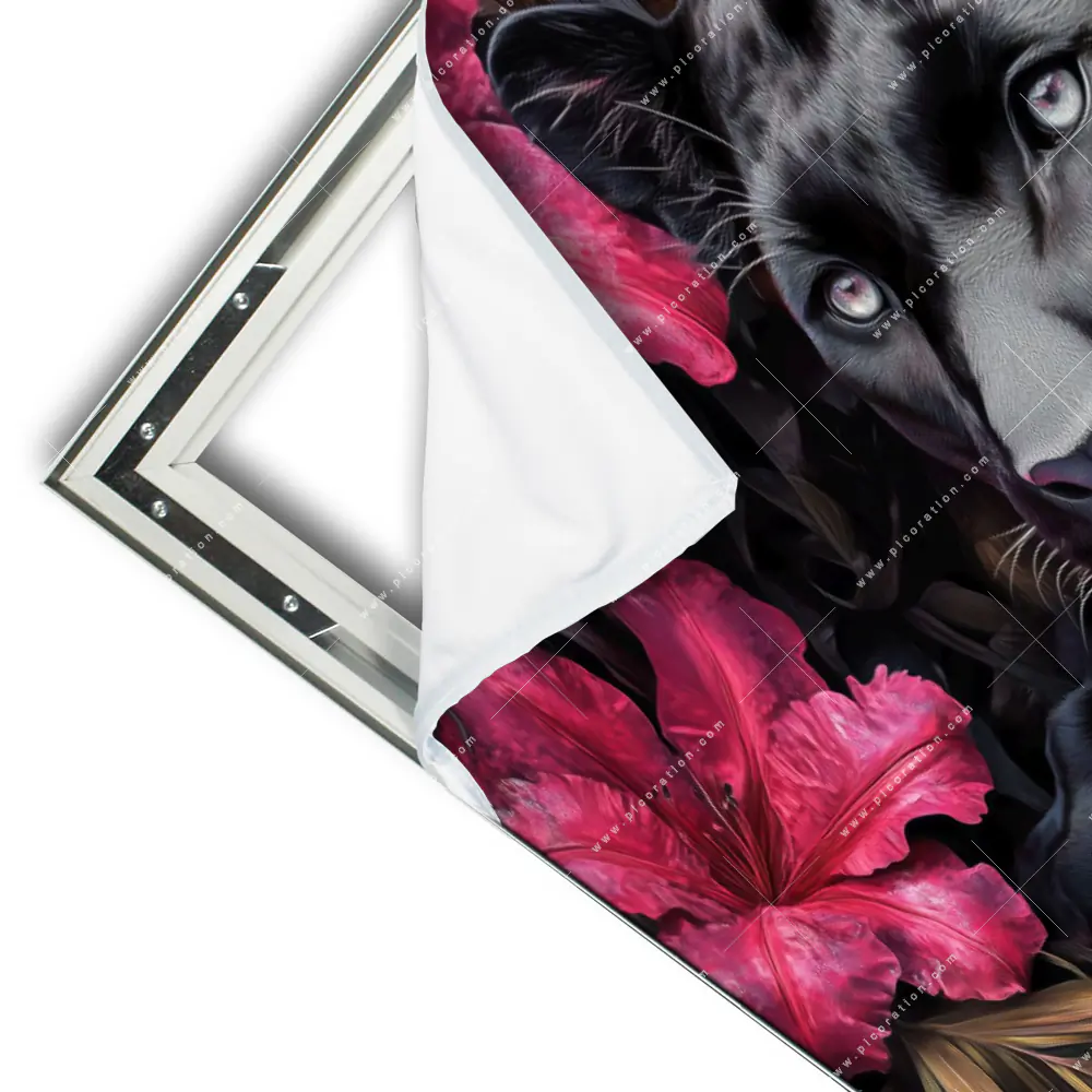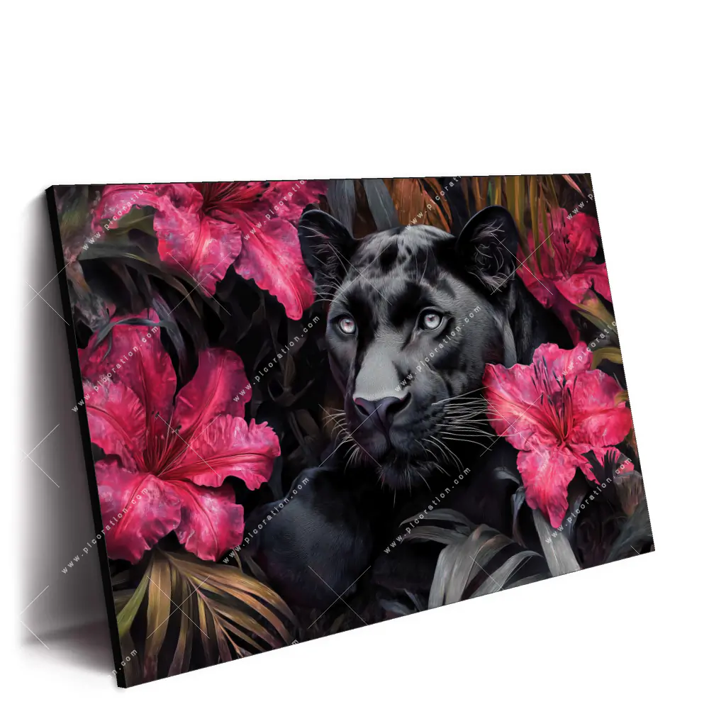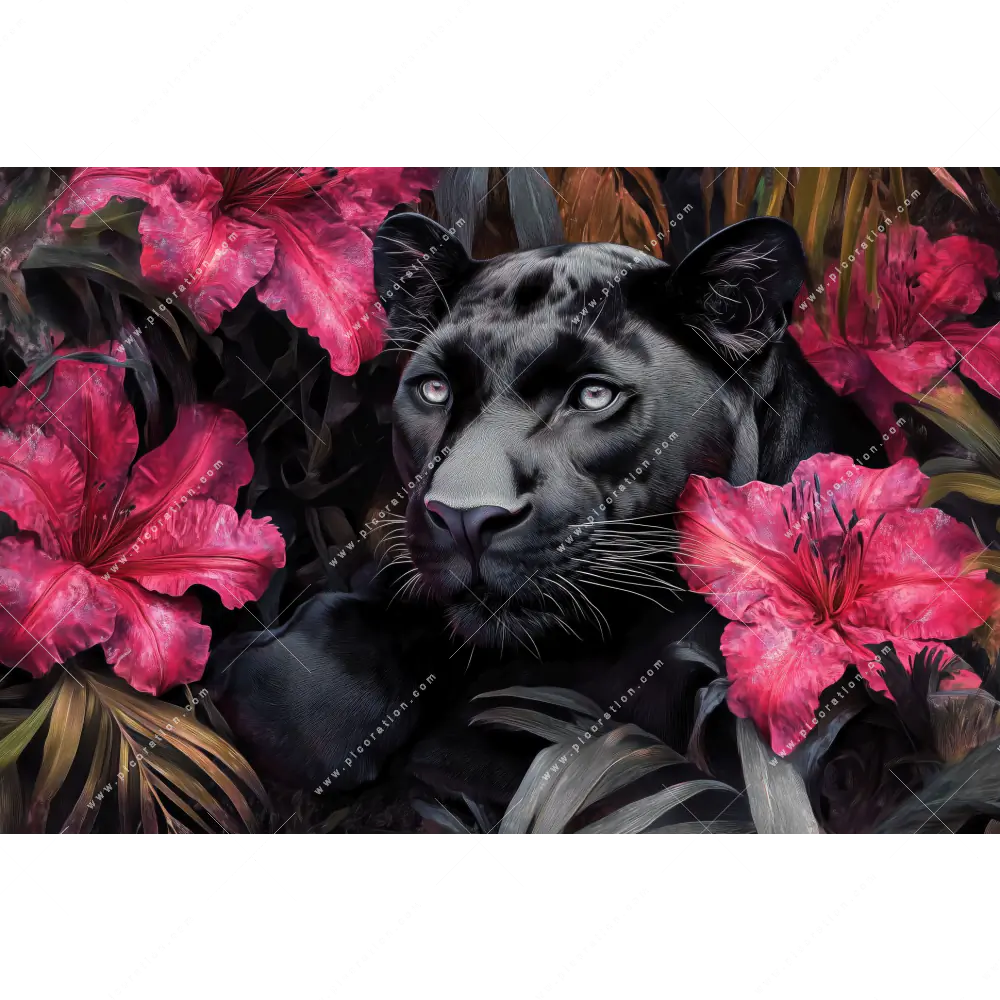 Beeindruckendes XXL Wandbild mit dem Motiv Panther im Blütenmeer