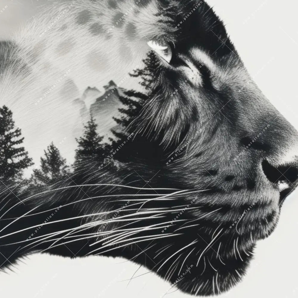 - Schlagwörter: Panther, Raubkatze, Wildkatze, Tierporträt, Doppelbelichtung, Wald, Bäume