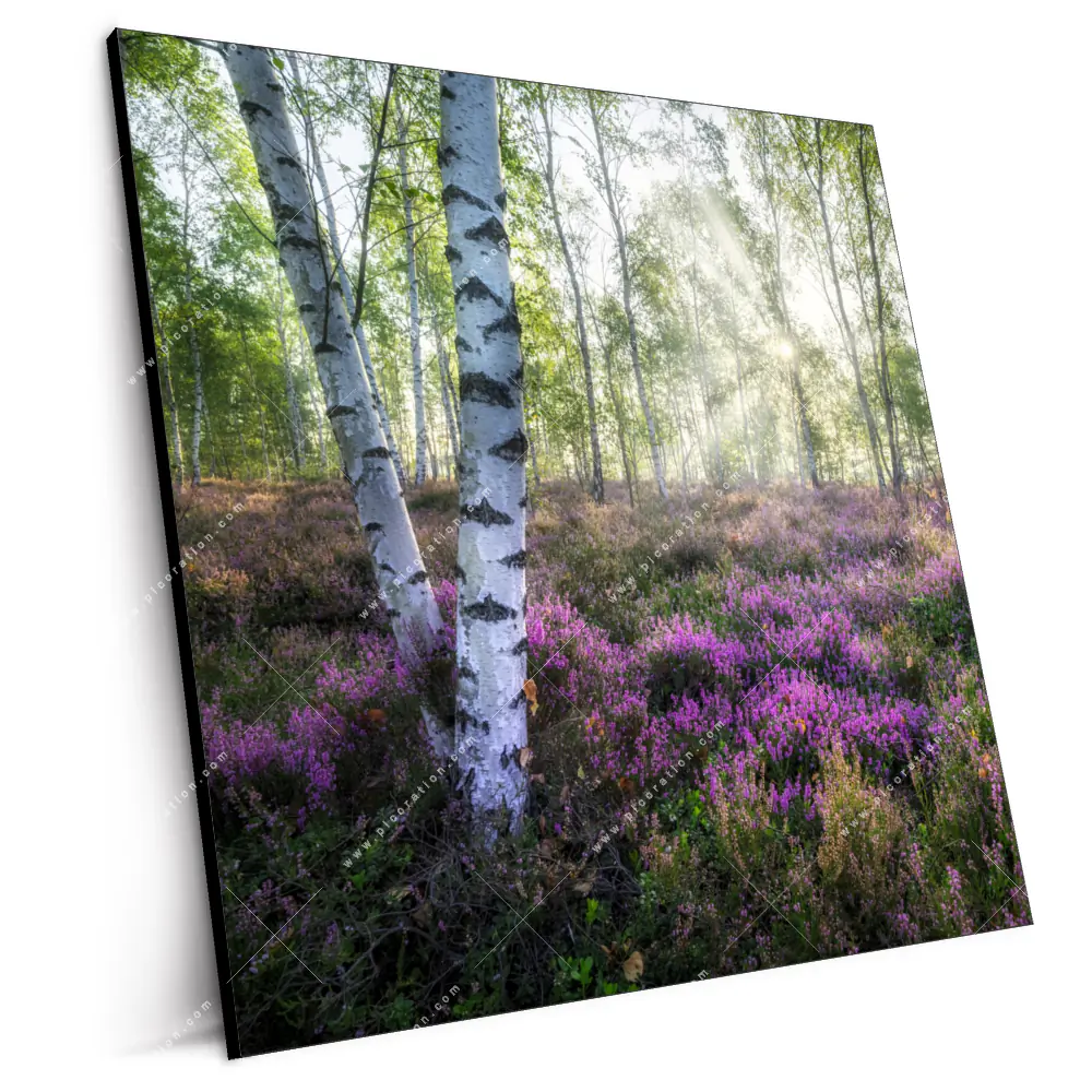 XXL-Wandbild | Wald mit Heideblumen | Quadrat