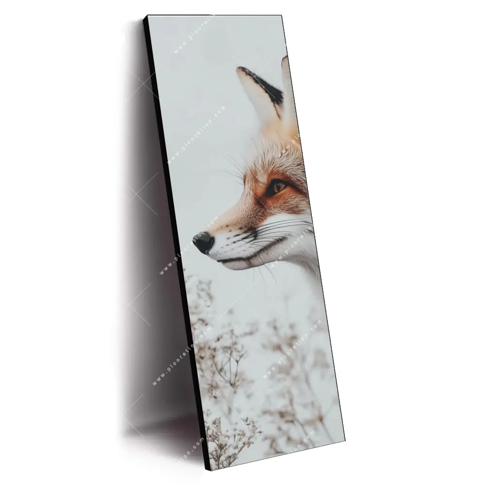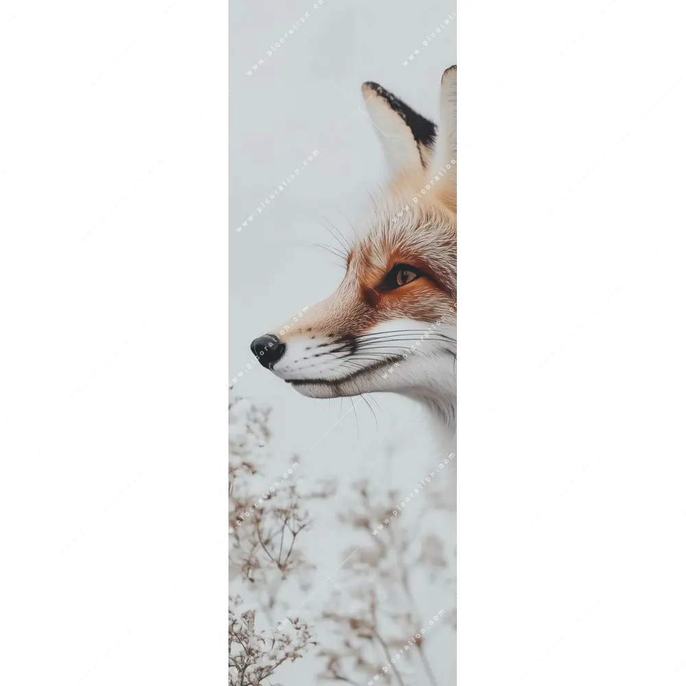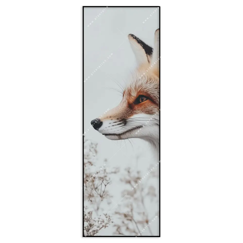 Das XXL Wandbild wird mittlerweile oft als Ersatz für das traditionelle Gemälde verwendet. Insbesondere das XXL-Wandbild Fuchsporträt in frostiger Stille wirkt in der Größe Maße durch das beeindruckende Panorama-Hochformat als einzigartiges Meisterwerk. Die Farben Weiss, Orange, Rot als auch der Retro - Vintage Stil kommen in diesem Format besonders zur Geltung und es entsteht eine einmalige Wirkung des XXL-Wandbildes Fuchsporträt in frostiger Stille.